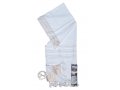 NEW! This magnificent acrylic non-slip Tallit will bring added dimension to your prayers. A wonderful combination of tradition, comfort and beauty, it features a textured raised checkerboard fabric (called Tashbetz- crossword weave). The design of white and gold stripes make this a Tallit of unique elegance and comfort.