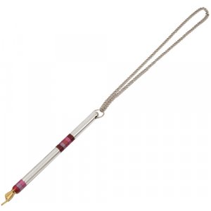 This impressive Torah Pointer elegantly combines tradition with contemporary design. Crafted from gray aluminum, it features a smooth aluminum body and a stainless steel tip. Engraved in Hebrew are the words, "Zot haTorah asher tzivah Hashem" - This is the Torah which G-d has commanded!" Attached is a small chain for hanging.