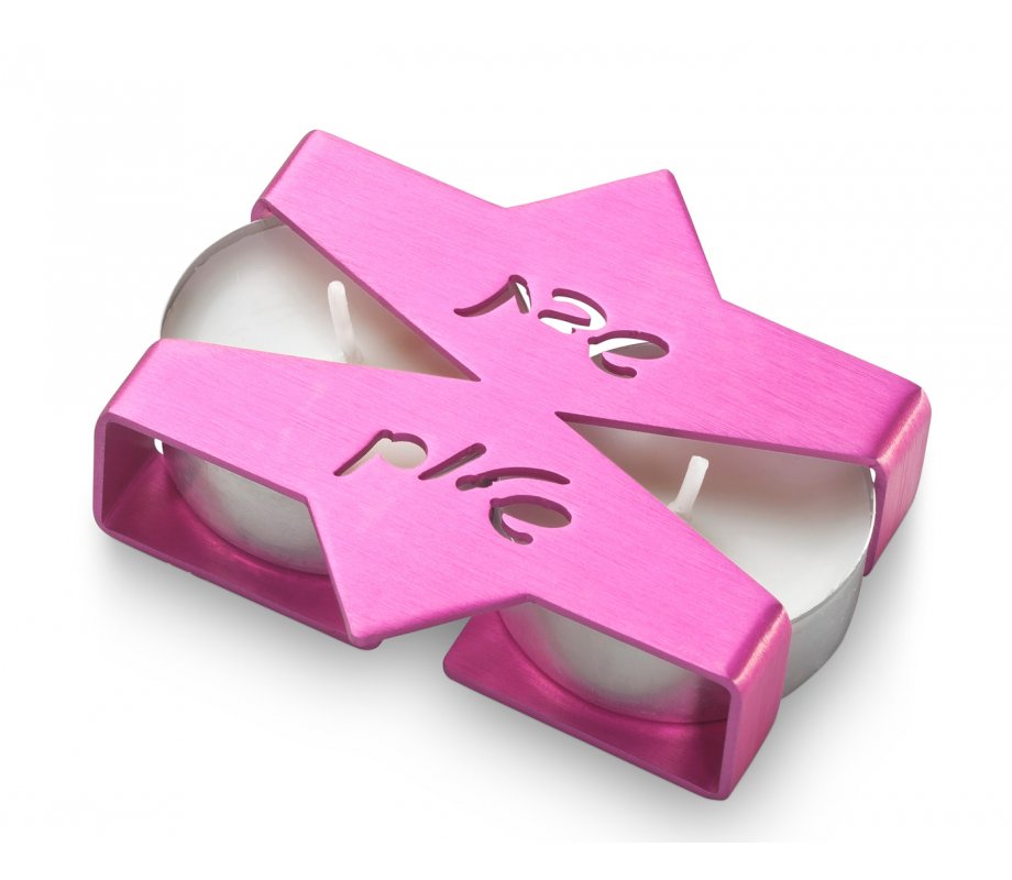 Surprise a good friend with a thoughtful gift – pink colored pocket candlesticks. The shape is an elegant Star of David, a centuries-old Jewish identity symbol and appropriately “Shabbat Shalom” is cutout at the base. Made in Israel from durable brushed aluminum by Judaica designer Adi Sidler.
