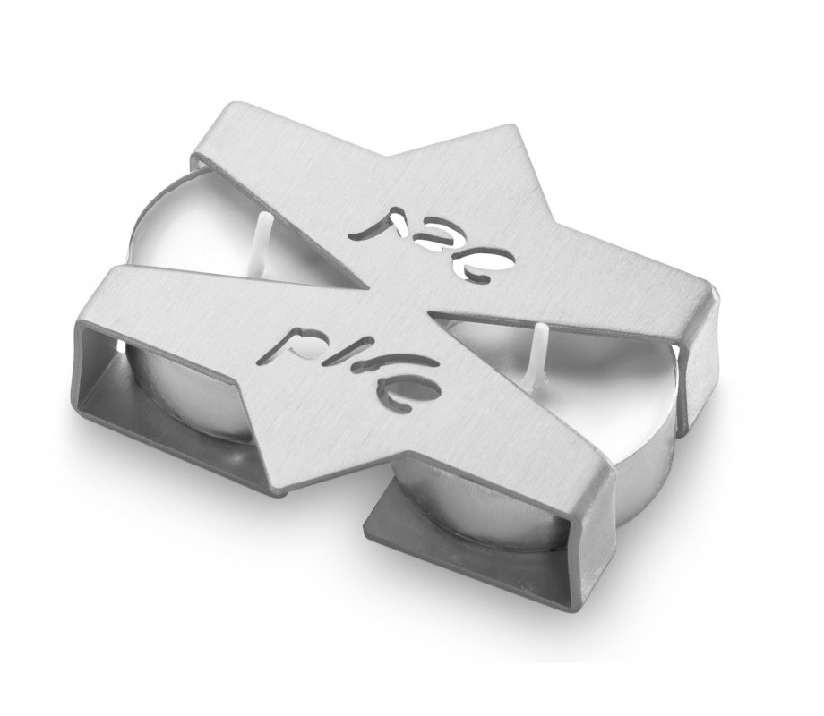 Even when you are away from home the timeless message of Shabbat remains. With these compact Star of David candlesticks with a cutout “Shabbat Shalom” in Hebrew, you can continue your weekly custom to welcome the Shabbat. Comes with two tea lights. Handcrafted in Israel by Adi Sidler.