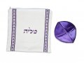 Set includes a tallit, matching kippah and tallit bag. Durable acrylic fabric— comfortable and easy to maintain Decorated in purple with menorah and Star of David