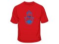 Wear this T-shirt with its Hamsa amulet print with gentle doves and olive leaves on either side. In the center boldly written is the word “CHAI”. The numerical value of the letter of CHAI is 18, an auspicious number in Jewish tradition with special protection or good fortune-bearing properties.