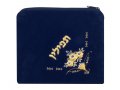 This distinguished Tallit and Tefillin Bag set is made of dark blue velvet. In the right hand corner is a pretty bouquet of flowers with the word Tallit embroidered above it in Hebrew in white and gold thread.