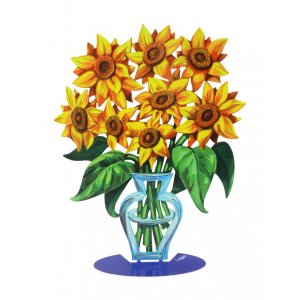 From iconic Israeli artist David Gerstein - a gift of love – a vase of colorful flowers with attached butterflies soaring above. This elegant free standing creation crafted from stainless steel can be viewed on both sides, making this a very special table decoration to bring the whiff of spring to your home.