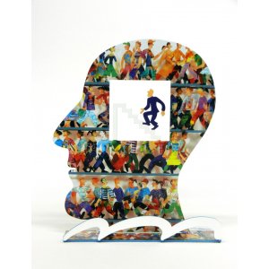This powerful psychedelic sculpture features bright concentric circles in cheerful striking colors. Within is yet another head with more concentric circles. The eye in the center is a reminder of the power of the human eye that sees, desires and conquers. A magnificent tribute to the power of the human brain! The reverse shows the same picture in different shades of color.