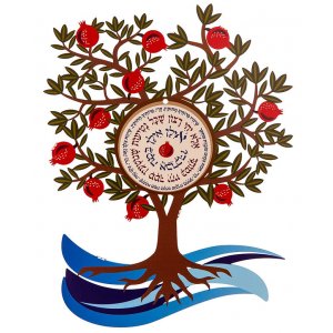 The perfect gift for home or office. Dorit Judaica’s metal tree sculpture, standing on a firm base, features shades of green foliage, rich with pomegranates. In the center, written in Hebrew, is the Psalmist’s prayer asking for the strength of a fruitful tree that grows alongside water ending with the words, “And may he succeed in all that he does!”