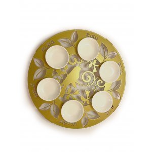 An attractive matzah holder with an innovative design! The hand-painted gold metal features an open-cut design of a bird perched on leafy branches. Posed on a diagonal with a solid square base, it simply invites you to help yourself to matzahs. Will add interest and style to any table setting.