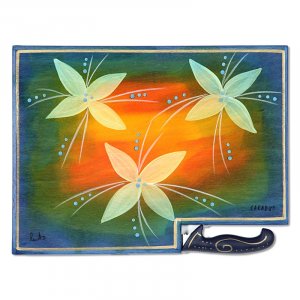 Nostalgia! Remember Jerusalem with its walls, narrow winding allies, curved domes and palm trees. Now, you have them here, all reproduced on this colorful handcrafted Challah board and accompanying stainless steel knife. The bright cheerful colors make this Board a visual delight.