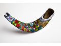 This impressive decorated ram’s horn will add a unique note to your Judaica collection. Our Israeli artist has lovingly hand-painted on the Shofar’s surface stunning images of the Old City… the Wall, domes and arches, each item in meticulous detail. Lower bands display luscious looking pomegranates, fruit rich in symbolism and above this are colorful spring flowers representing growth and development.