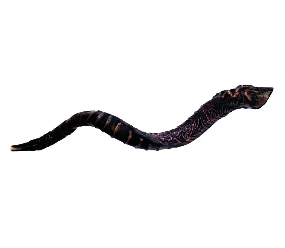 This long decorative Yemenite shofar with its noble curves will mark you as a real connoisseur! It is elegantly wrapped in a stunning cover of brown leather with subtle golden shades. At the end of the Shofar, exquisitely crafted from the leather, is a gold-colored Star of David. A collector’s item!