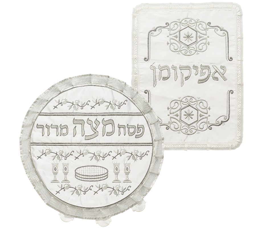 - Satin Matzah Cover and Afikoman Bag embroidered with silver thread