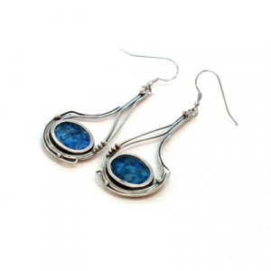 Blend history and modern artistry with these sophisticated drop earrings featuring a circular piece of luminous blue-green Roman glass in a decorative sterling silver frame. Beneath, a dangling fringe sways delicately with every movement making these earrings a true statement of elegance.