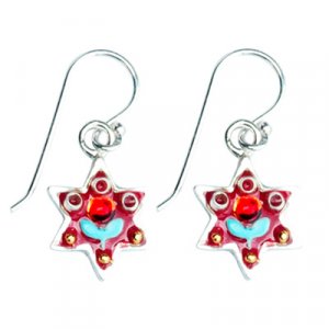 Michal Kirat Roman Glass Drop Earrings with Sterling Silver Star of David