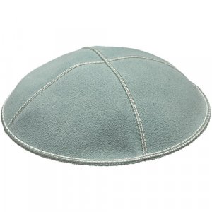 Navy Blue Suede Kippah with Silver Embroidered Star of David at the Front
