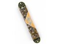 Let the memory of Jerusalem join your Mezuzah protection. This elegant Mezuzah case depicts views of the holy city in sleek shades of brown. On the side is a large "shin" design. Sparkling silver crystals highlight and enhance this beautiful design.
