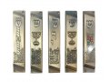 Bring a fashion note to your home with matching mezuzah cases on the doorposts. Each one of the mezuzah cases in this set of five, is decorated with a classic Judaic motif. Engraved on the brass is an image of the Temple Menorah, the High Priest's Breast Plate, Jerusalem, the Westn Wall and on all of them is the letter "shin", denoting the Divine Name.