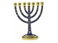 Seven Branch Gold Menorah, Dark Blue Enamel Plated with Judaic Symbols – 9.5”