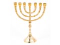 Seven Branch Menorah with Decorative Branches, Gleaming Gold Brass - 8“