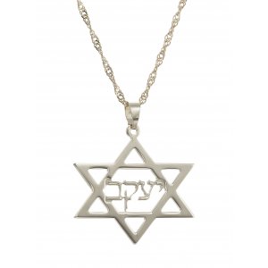 A delicate Star Of David with little heart under the personalized name made by your request, forms this special silver pendant.