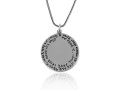 A necklace whose meaningful message will never fail to excite you. In times of danger or great personal challenge, it is customary to recite Psalm 121. Every word is a gem, re-affirming total dependence and trust in G-d, our only source of protection. Now, on this beautiful pendant, you can carry these precious words with you at all times. The Psalm is hand-etched in a circular design around a sterling silver disc. In the center, on an ornate background, is a 14K gold Star of David.