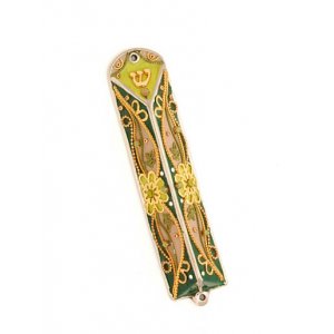 A pretty Mezuzah case for beauty and blessings. It features the Star of David on top with the name of G-d underneath and the traditional image of the Ten Commandments Tablet at the base. Made in Israel from long-lasting metal.