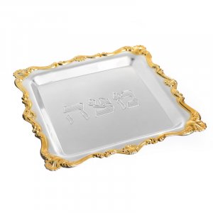 A matzah tray is a no-fail gift for your hostess this Pesach. It will be used and enjoyed throughout the Festival, keeping matzah crumbs off the table. Crafted from silver colored metal, the word Matzah in Hebrew, is framed in the center. Around is an elaborately engraved rim with