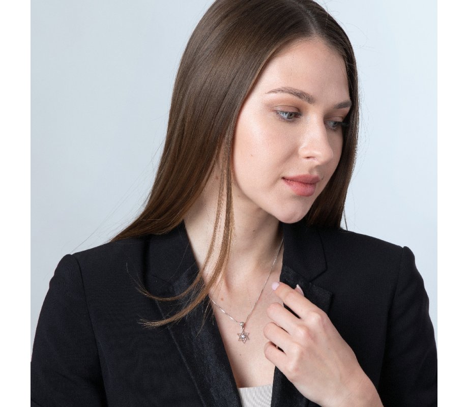 Sterling Silver Pendant Necklace - Angular Star of David with Crystals