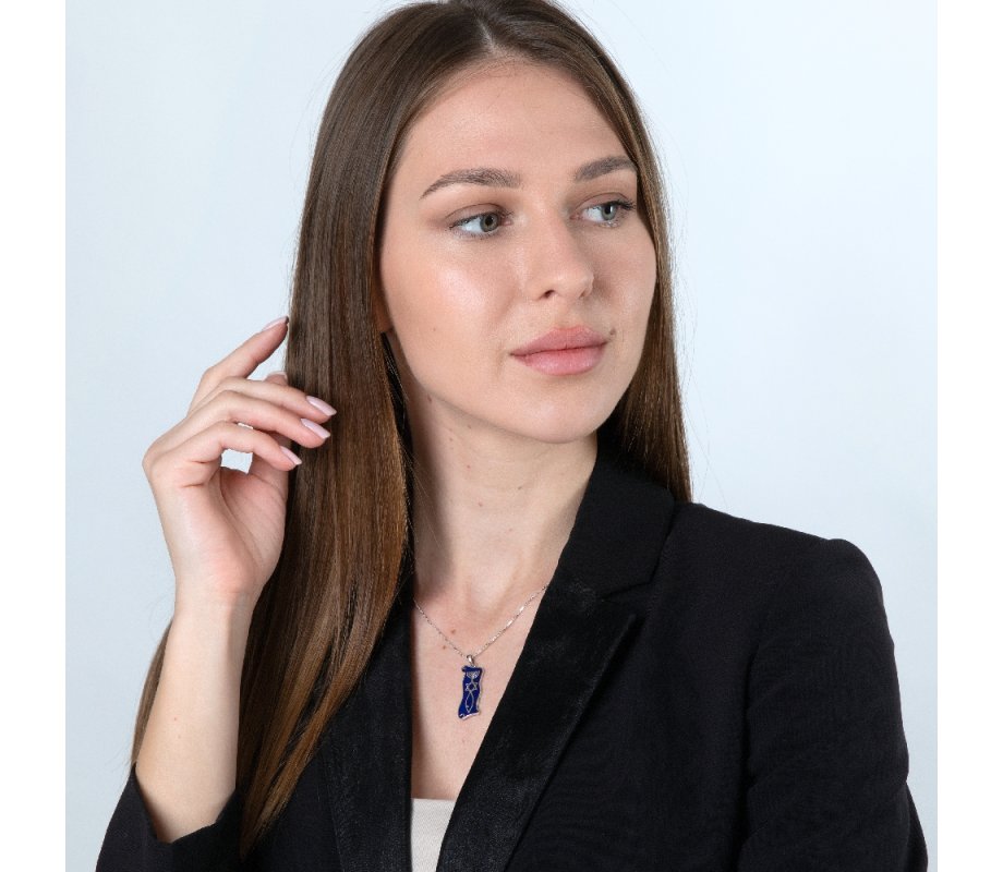 Sterling Silver Pendant Necklace, Blue Enamel - Menorah, Star and Fish Symbol