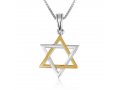 Sterling Silver and Gold Plated Pendant Necklace – Interlocking Stars of David