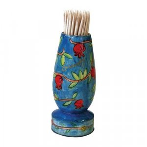 Yair Emanuel Colorful Wood Toothpick Stand with Hand Painted Leafy Pomegranates$11.47 -