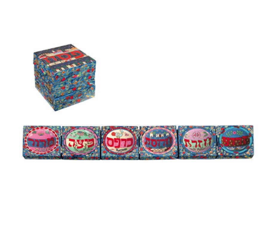 On vacation for Pesach? Looking for a space saving Seder Plate? You will love this this compact hand painted wood Seder Plate from Yair Emanuel. The six plates form a row, each one lavishly painted with a colorful forestry design and the name of the ritual food. Covered with a strong lacquer layer, the plates can be hand washed and the colors will remain bright and vibrant. After Pesach, they fold neatly into a box shape for easy storage.