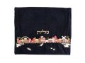 Keep nostalgia for Jerusalem close to your heart with this lovely Tallit and Tefillin bag set from Yair Emanuel. On quality navy velvet fabric, he has embroidered with lots of colorful threads, a gorgeous depiction of the holy city of Jerusalem featuring the classic domes and arches with the iconic windmill. Above is the word Tefillin or Tallit respectively.