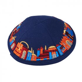 Dark Blue Fabric Kippah with Embroidered Jerusalem Design - Hidden Clip InsideSize: 7.2"$11.99 -