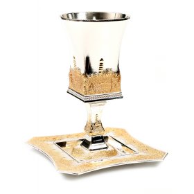 Kiddush Cup and Plate, Silver Plate with Gold Elements - Jerusalem DesignSize: Height 9 cm / 3.5"$32.31 -