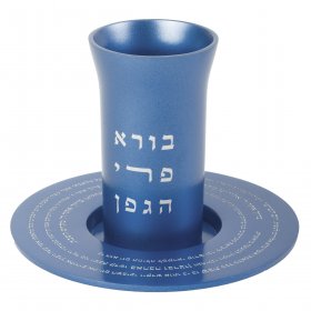 Yair Emanuel Aluminum Kiddush Cup and Plate, Silver Pomegranate Overlay - Blue$82.27 -