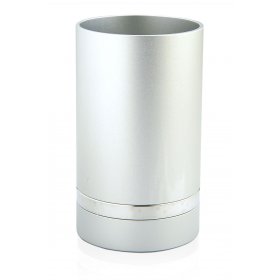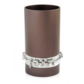 His Kiddush cups are a blend of tradition and contemporary style – perfect for the modern Jew who is looking for a Kiddush cup to fit his d&233;cor and life-style. The stylish unadorned beaker style cup is decorated with a silver band at the base that contrasts with the stunning metallic color and the matt finish of the anodized aluminum.