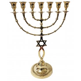 Seven Branch Menorah on Stem, Gold Colored Brass, Star of David - 11"Height: 12"$80.77 -