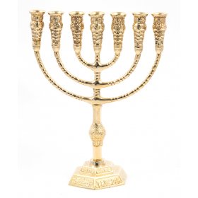 Seven Branch Menorah in Decorative Gold Colored Brass, Jerusalem Design 12Height: 12 / 30.4 cm$134.55 -