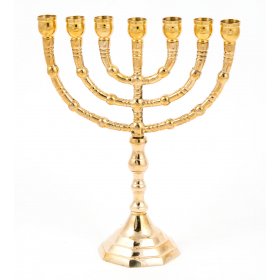 Small Size Seven Branch Menorah, Gleaming Gold Brass - 10"Height: 10"$80.77 -