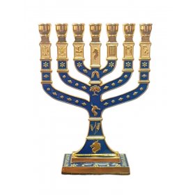 Gold with Blue Enamel 7-Branch Menorah, Judaic Emblems and Star of David 9.5Height: 9.5"$60.51 -