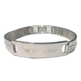 Stainless Steel Bracelet, Center Plaque with Shema Yisrael Prayer Words – Hebrew$16.11 -