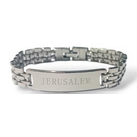 Stainless Steel Bracelet, Center Plaque with Word "JERUSALEM"$16.11 -