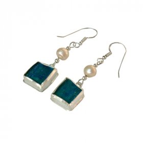 Michal Kirat Sterling Silver Dangle Roman Glass Earrings with Pearl on Circular Disc$168.05 -