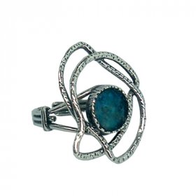 Michal Kirat, Handmade Sterling Silver Ring with Roman Glass - Adjustable Band$104.31 -
