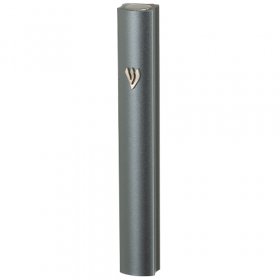 Gray-Silver Aluminum Mezuzah Case with Textured Design, Silver Shin - Various SizesComes in various sizes$12.12 - $13.46 -
