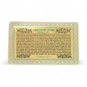 These unusual items are Blessings in different forms. The Hamsa Travelers Blessing with Besamim (fragrant spices) is a beautiful favor to present at festive occasions and can be used during the Havdalah ceremony. The white leather Brides Prayer booklet comes with an elegant white leather cover studded with crystals and contains a precious prayer for the bride on her wedding day. For handy business card sized blessings, the laminated cards come in many versions of prayers, in English, French, Spanish and Hebrew. You can choose from blessings for easy birth, traveler's prayer, amulets against the evil eye, success, good health and many more. The handsome framed items have a gold metal central design of Jerusalem with prayers in Russian, English and Hebrew and feature Jewish themes such as Menorah, Hamsa and Western Wall. the Hebrew Home Blessing clock will decorate your sideboard or end table as will the Mazal Tov photo album, where you will proudly be able to display pictures ornamentally.