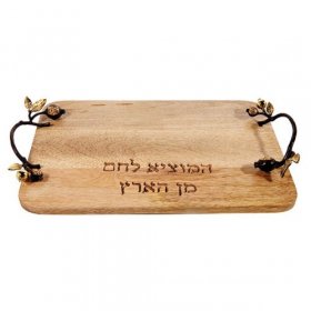 Yair Emanuel Grained Wood Challah Board, Curved Metal Handles - Pomegranates$114.73 -