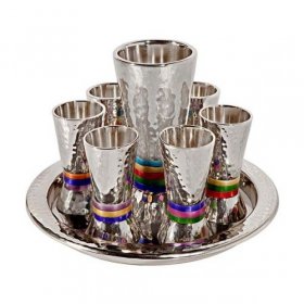 Yair Emanuel Hammered Nickel Kiddush Cup and Saucer - Colored ringsChoice of colors$49.74 -