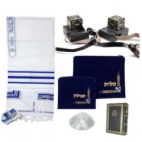 Basic Sephardic Tefillin & Tallit Bar-Mizvah SetTefillin Peshutim, Tallit, Siddur and Bags.$326.76 - $393.98 -