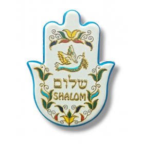 Textured Ceramic Hamsa Magnet, Dove of Peace – Shalom in Hebrew and English$3.97 -